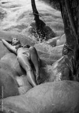 Bikini Girl enjoys refreshing water of sticky waterfall Bua Tong Waterfalls Chiang Mai