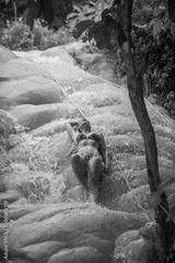 Bikini Girl enjoys refreshing water of sticky waterfall Bua Tong Waterfalls Chiang Mai