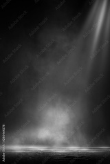 Wet asphalt, reflection of neon lights, a searchlight, smoke. Abstract light in a dark empty street with smoke, smog. Dark background scene of empty street, night view, night city.