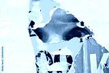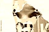 Old grunge ripped torn vintage collage street posters creased crumpled paper surface placard texture background backdrop / Selective color empty space for text