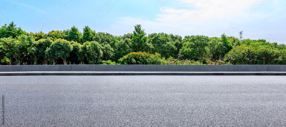 Asphalt highway and green forest with beautiful clouds landscape