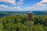 Aerial view of Wiezyca. Observation Tower. Kashubian Landscape Park. Kaszuby. Poland. Photo made by drone from above. Bird eye view.