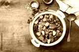 Beef meat stewed with potatoes, carrots and spices (hungarian goulash).