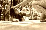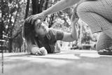 Fainted girl helped by an old woman – Teenager lying on the ground while vitals are checked by an elder citizen