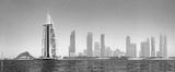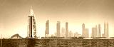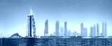 UAE, United Arab Emirates. Dubai and the Persian gulf at sunset. Under the water life illustration