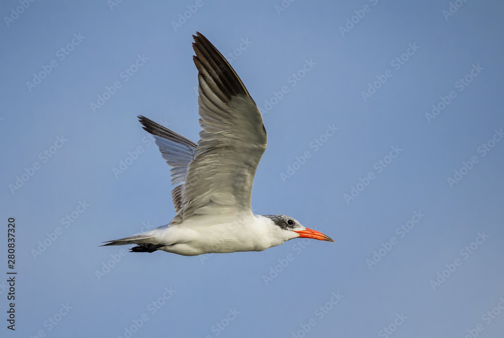 Caspian Tern - Sterna caspia, beautiful water bird from African shores and coasts, La Somone, Senegal.