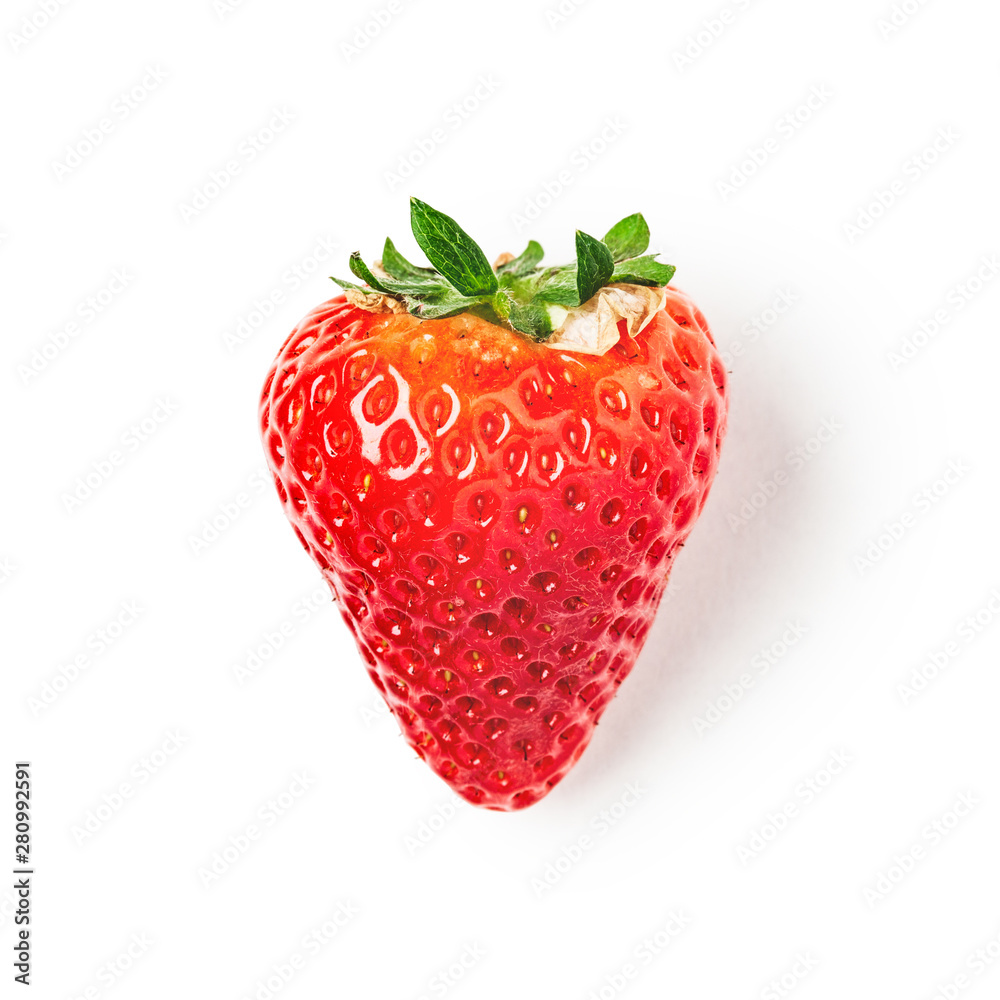 Strawberry fruit with leaves.