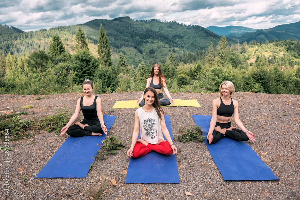 happy yoga girls are meditating