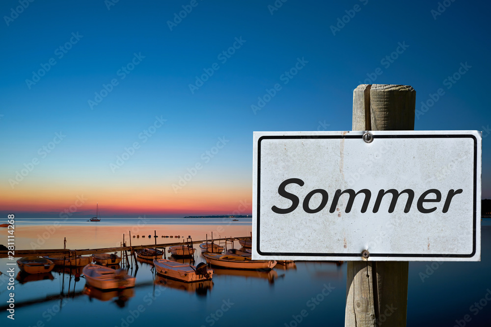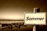 Schild mit der Aufschrift "Sommer" an der Küste der Adria in Kroatien