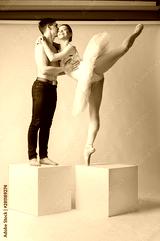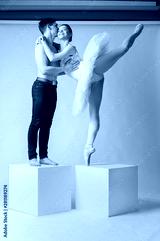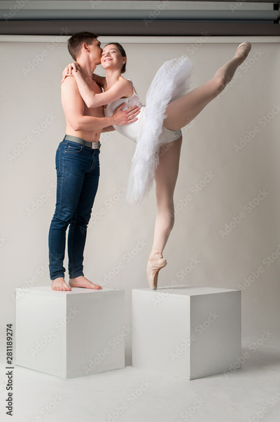 Ballet dancers falling in love. Romantic relations between ballerina and ballet partner. Couple in love.