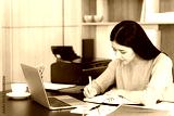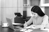 lifestyle beautiful Asian business young woman using laptop computer on office desk , business concept.