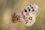 Apollo Butterfly - Parnassius apollo, beautiful iconic endangered butterfly from Europe, Stramberk, Czech Republic.