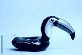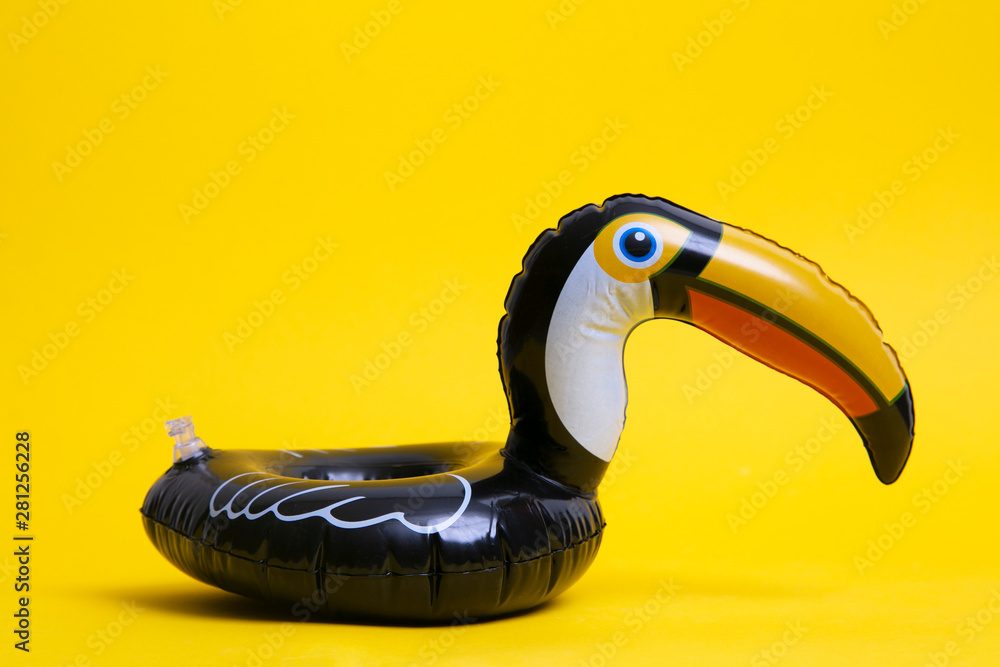 Pelican summer inflatable holiday pool toy against a bright yellow background