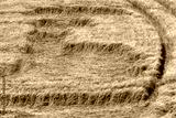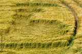 Cheltenham, Gloucestershire, England, UK. July 2019. Storm damaged crops in a farmers field much of the crop is laying flat after strong winds and lightening.