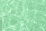 Closeup of calm clear water surface with water splashes in trendy neo mint color. Swimming pool water texture. Trendy fresh abstract nature background. Year color trend concept.