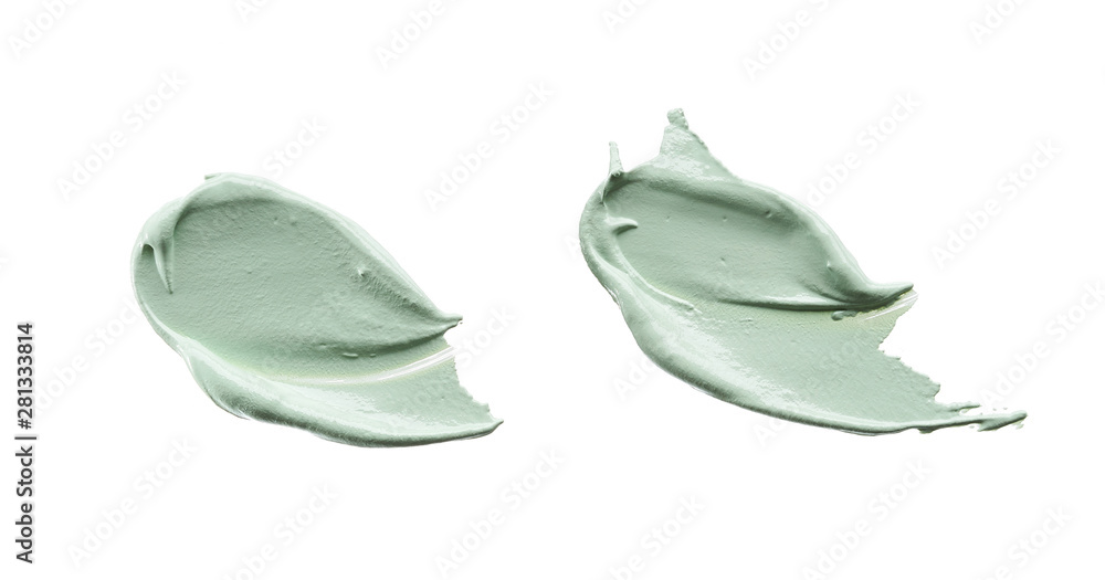 Gently green strokes and texture of face cream or acrylic paint isolated on white background