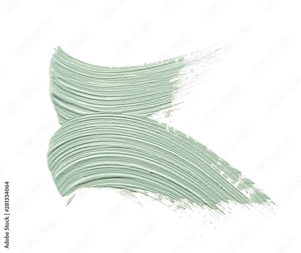 Gently green strokes and texture of face cream or acrylic paint isolated on white background