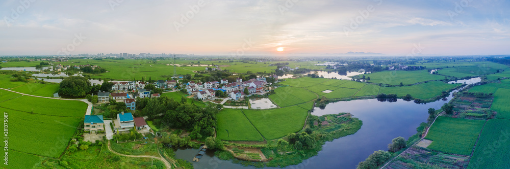 Aerial photo of rural summer pastoral scenery in langxi county, xuancheng city, anhui province, China