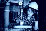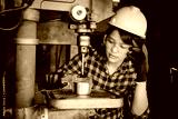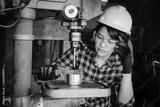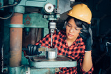 Asian beuatiful woman working with machine in the factory engineer and working woman concept or woman day