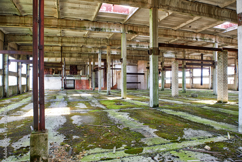 Large abandoned industrial building, unfinished factory