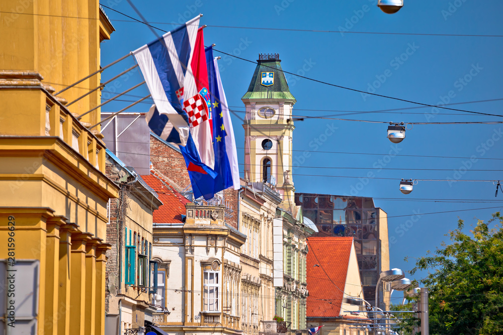 Osijek colorful street and landmarks view