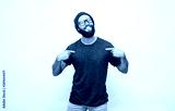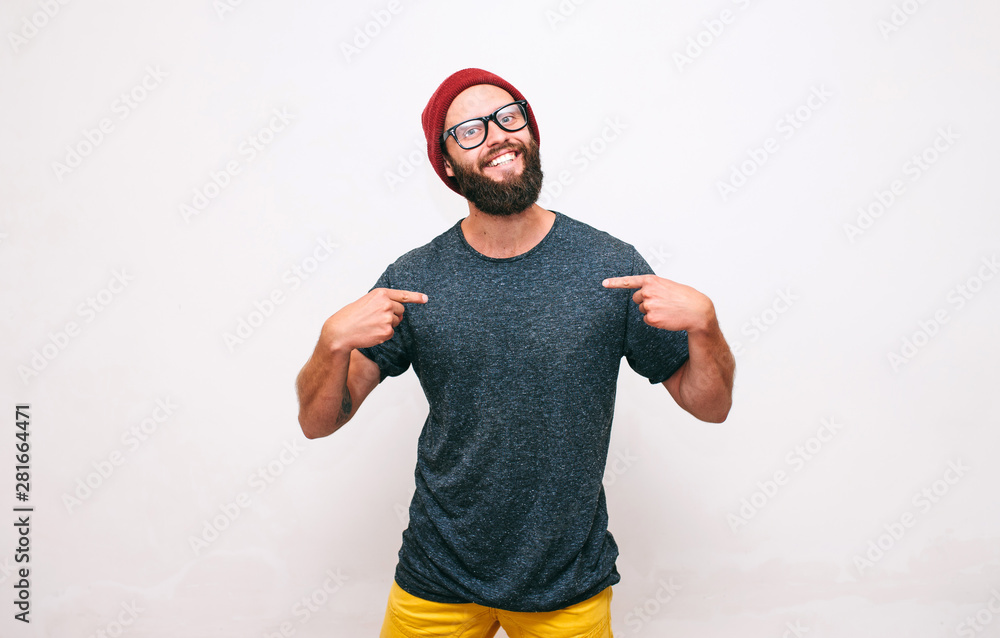 Crazy hipster guy emotions. Collage in magazine style with happy emotions. Discount, sale, season sales.