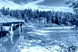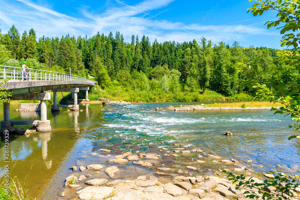 Bridge on Dunajec river on sunny summer day near Nowy Targ, Tatra Mountains, Poland