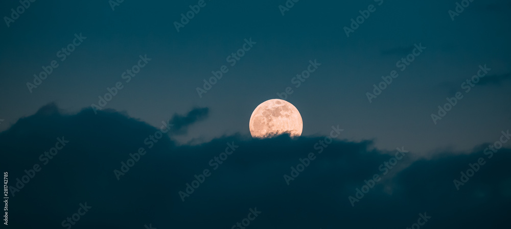 Full Moon Rising In Cloudy Evening Sky