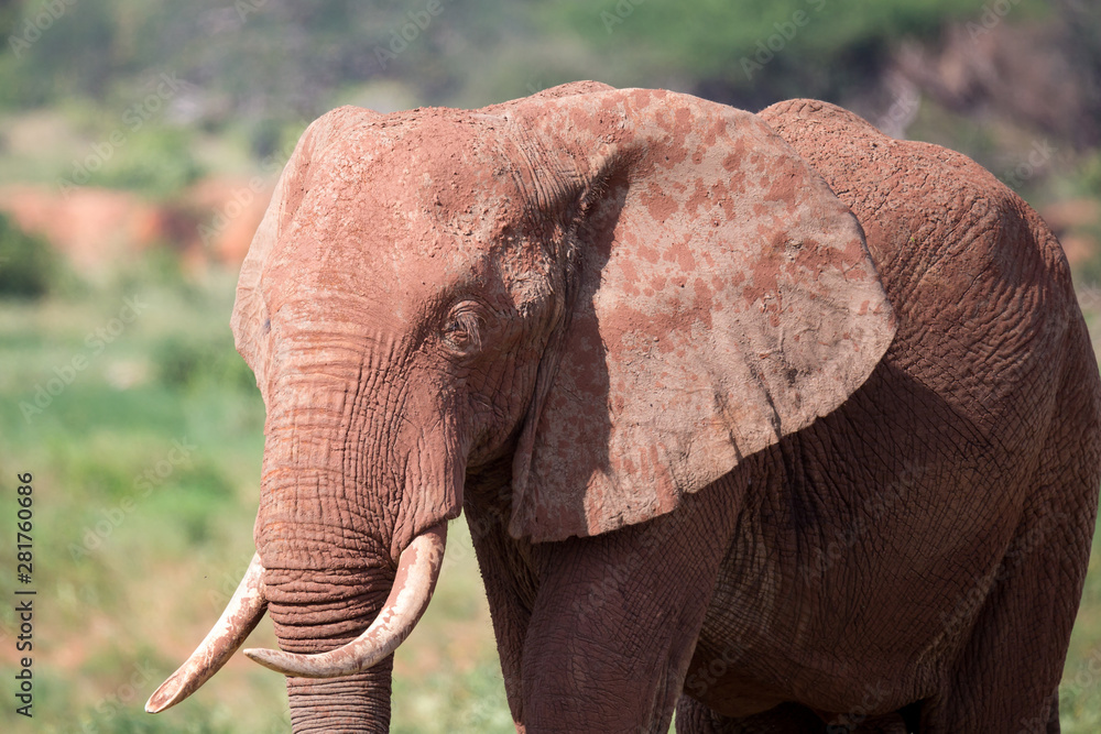 The face of a red elephant taken up close