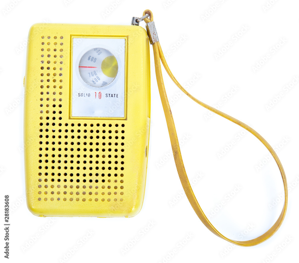 Vintage Yellow Plastic Transistor Radio Isolated Background