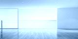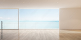 Perspective of empty modern living room on sea view background,The sun light cast shadow on the timber floor. - 3D rendering.