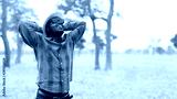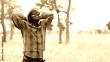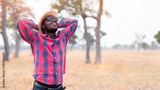 Portrait of african traveler smiling and enjoying his recreation time in nature.Concept of tourism day