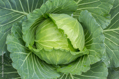head of cabbage in garden