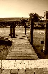 atracador de barcos ou pear em Veneza, Italia. Usado para aportar as gondolas, vaporetto e taxi