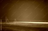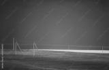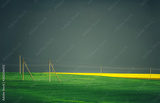 High voltage power lines and countryside. Thunderstorm over a field. Stormy sky and dark clouds.