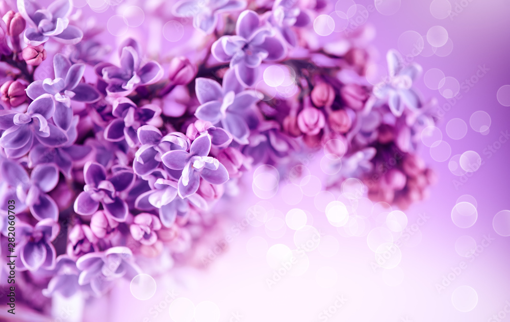 Lilac flowers bunch violet art design background. Beautiful violet Lilac flowers closeup. Watercolor nature floral backdrop