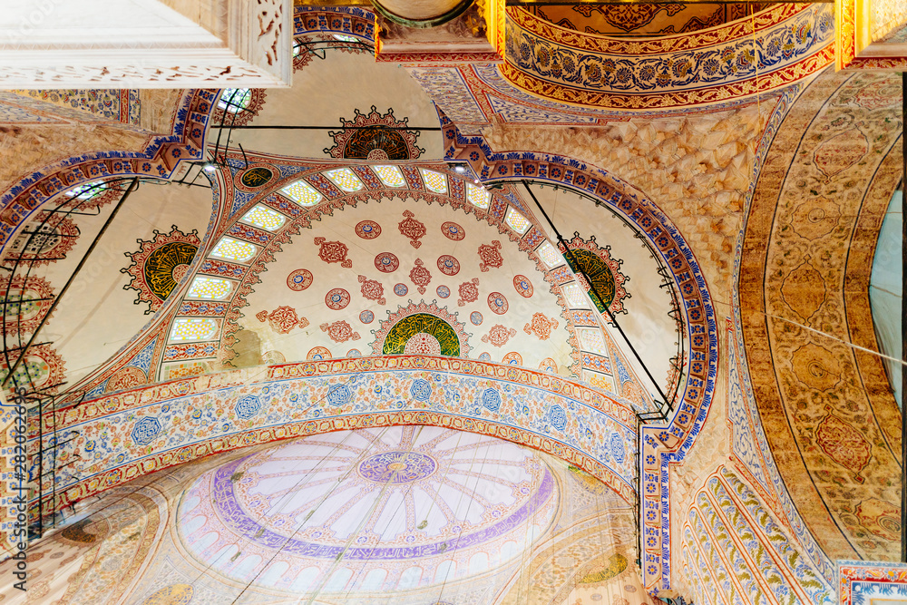 Blue Mosque, interior details of domes and columns. Istanbul, Turkey