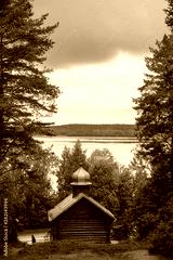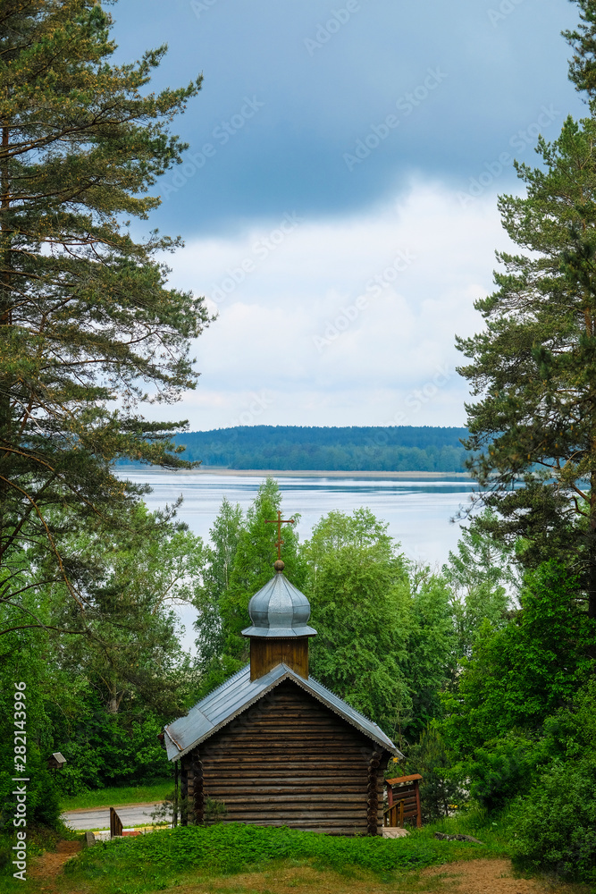 Image of an old wooden chapel in the city of Sebezh, Russia