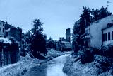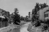 Padova, Italy - Jujy, 4, 2019: embankment of a channel in Padova, Italy