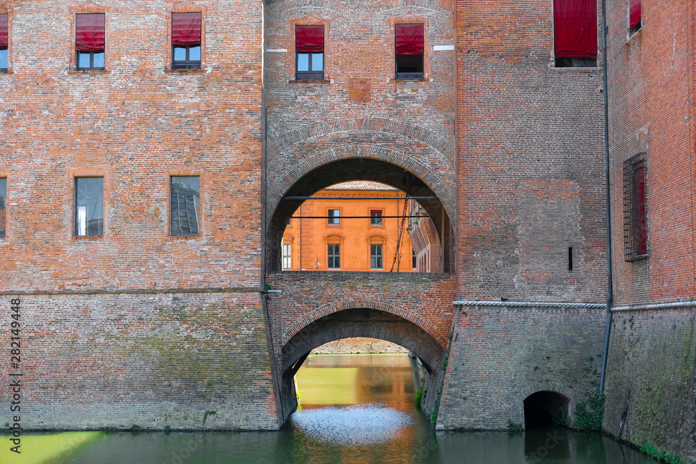 Ferrara, Italy - July, 5, 2019: the image of Ferrara castle in Ferrara, Italy