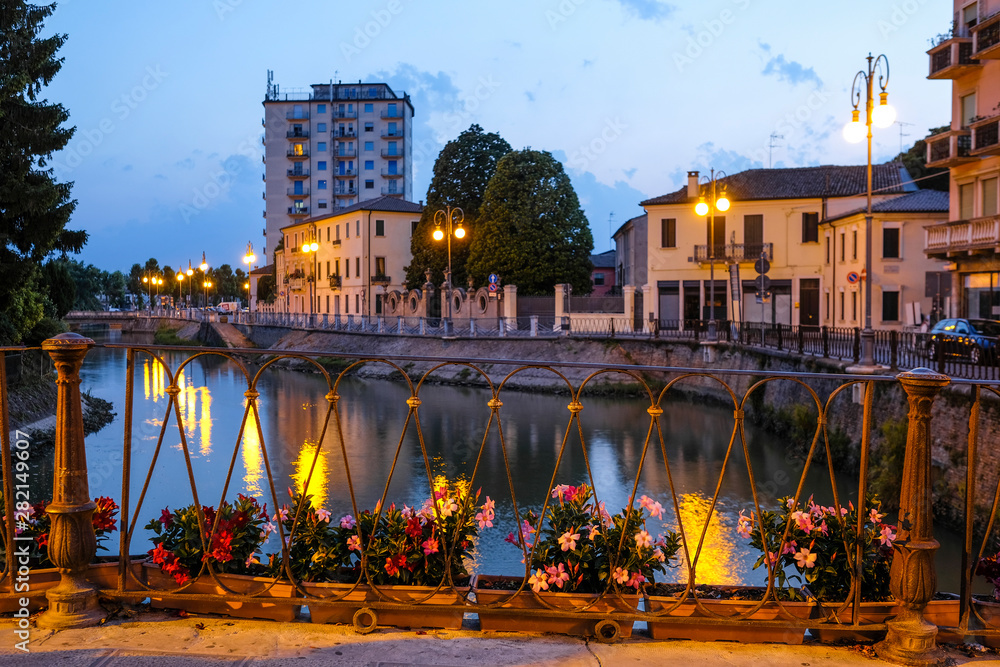 Adria, Italy - July, 07, 2019: cityscape with the image of channel in Adria, Italy in the evening