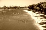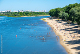 People sunbathing on the beach of Sozh river in summer. Gomel, Belarus