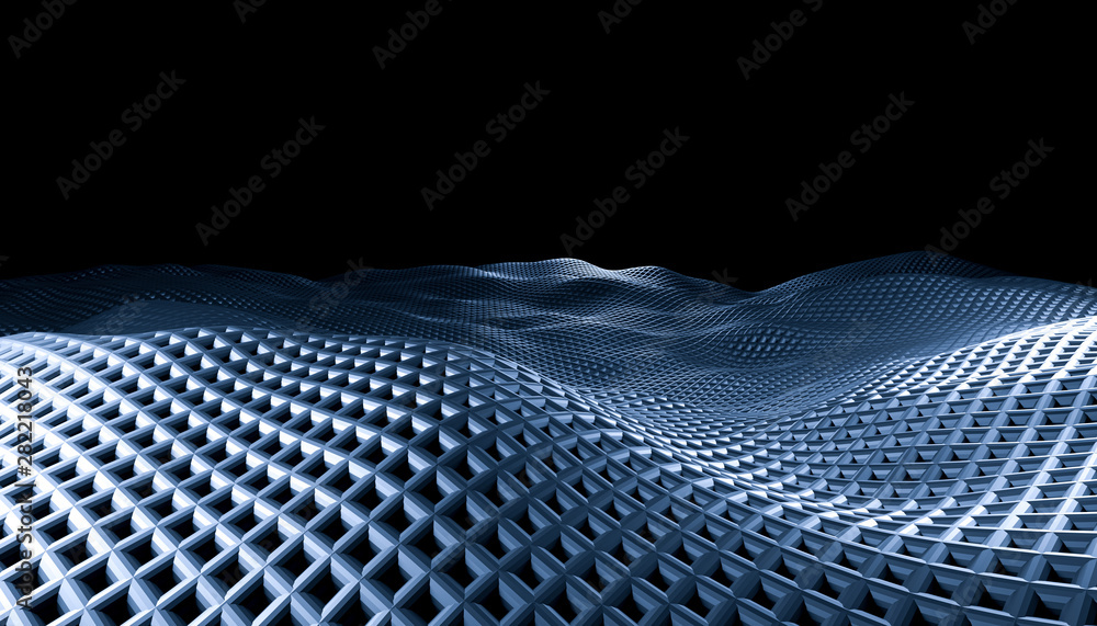 geometric abstract grid waves on a black background.