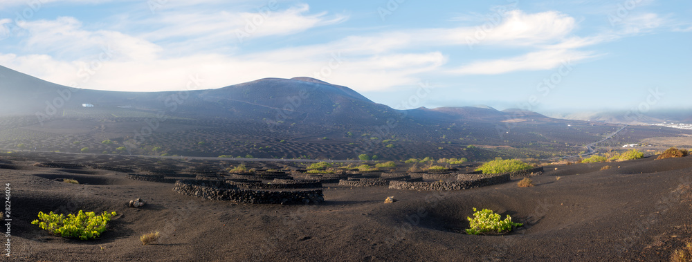 Vineyards of La Geria, Lanzarote. The most unusual vineyards in Europe. Vine grows on the slopes of volcanoes directly on volcanic ash.