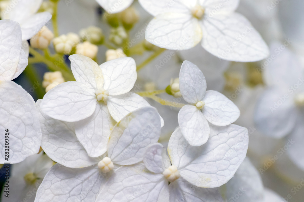 white hydrangea blooming in the summer garden