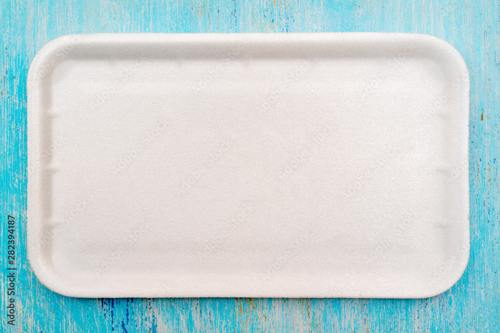 Styrofoam food tray for packaging and trade.