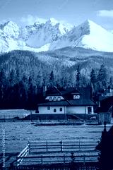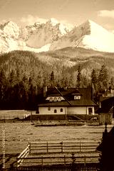Guesthouse and mountain snowy landscape horizon in Zakopane