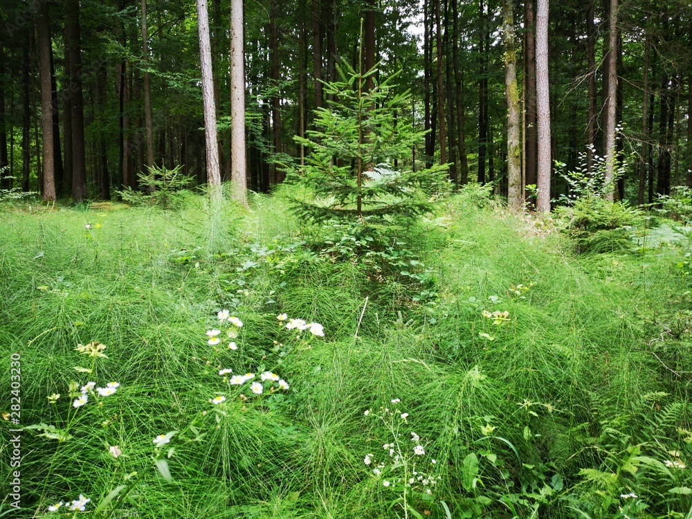 kleiner junger Baum im Wald - Setzling Aufforstung