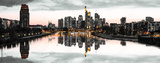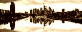 High resolution aerial panoramic view of Frankfurt, Germany after sunset.