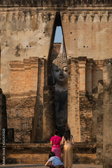 Touristen vor einer Buddha Statue im Sukhothai Historical Parc